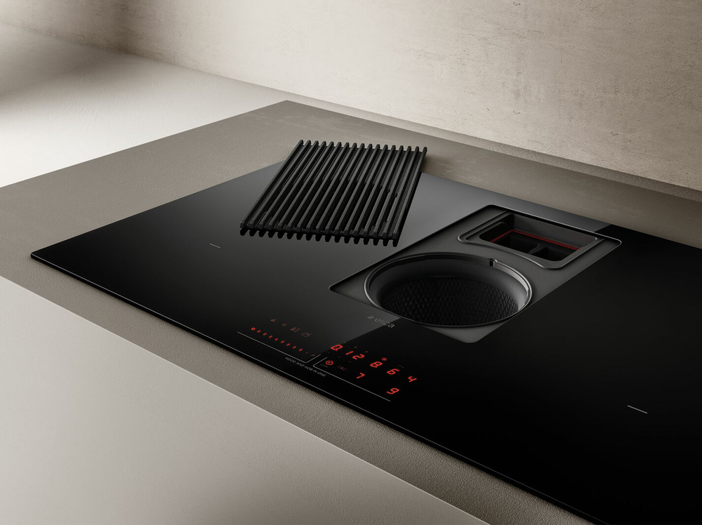 Модели со встроенной вытяжкой подходят для компактных кухонь. Запахи, пар и дым от готовки полностью поглощаются встроенной вытяжкой.