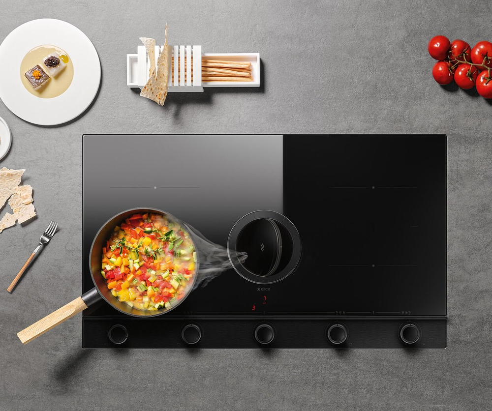 Модели со встроенной вытяжкой подходят для компактных кухонь. Запахи, пар и дым от готовки полностью поглощаются встроенной вытяжкой.