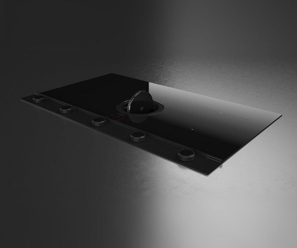 поверхность варочная стеклокерамическая индукционная с встроенной вытяжкой, 90 см, черный