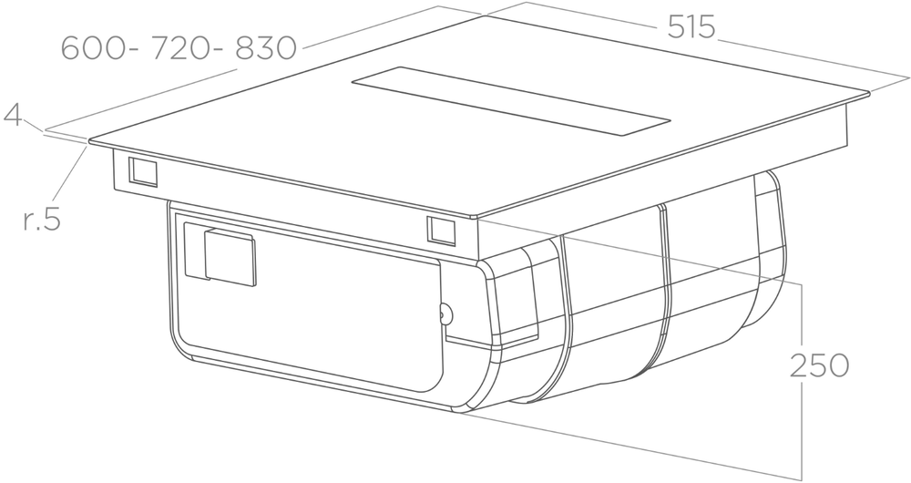 Характер огранки фаски на внешней стороне варочной панели. Металлические рамки предотвращают забивание монтажных швов крошками и пылью.