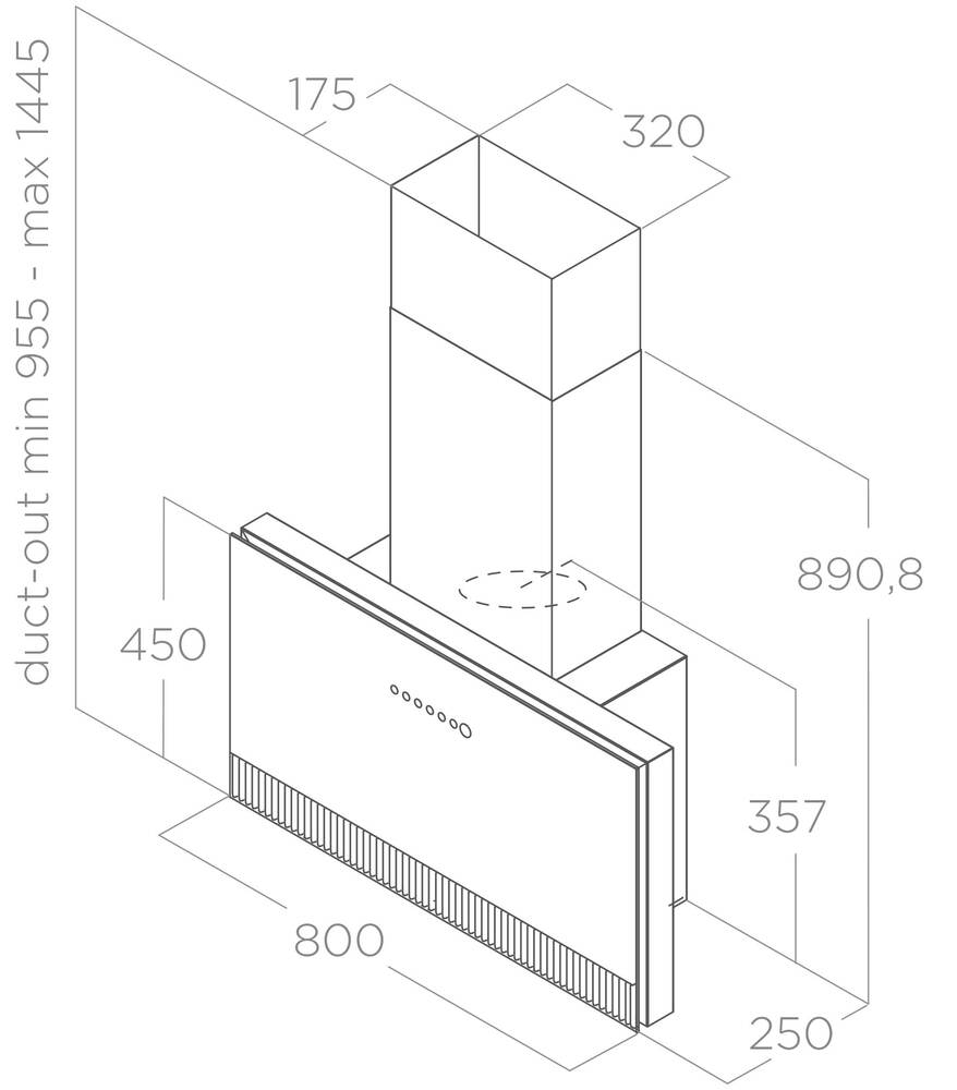 вытяжка пристенная, 80 см, 1300 м3/ч, черное стекло