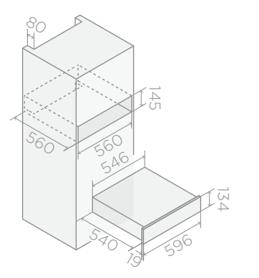 ящик для подогрева посуды встраиваемый, 59,6х54х13,4 см, черный