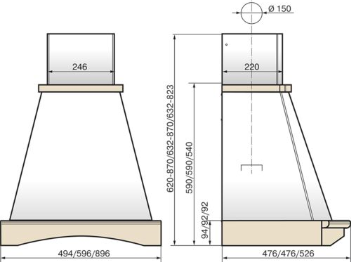 вытяжка классическая, 90 см, 650 м3/ч, бежевый/дуб неокрашенный