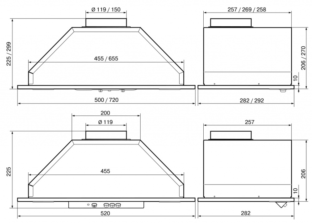 вытяжка встраиваемая в подвесной шкаф, 52 см, 400 м3/ч, нержавеющая сталь