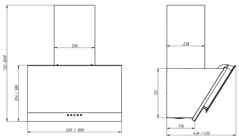вытяжка наклонная, 90 см, 700 м3/ч, антрацит/черный