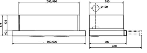 вытяжка встраиваемая телескопическая, 60 см, 430 м3/ч, черный/черн
