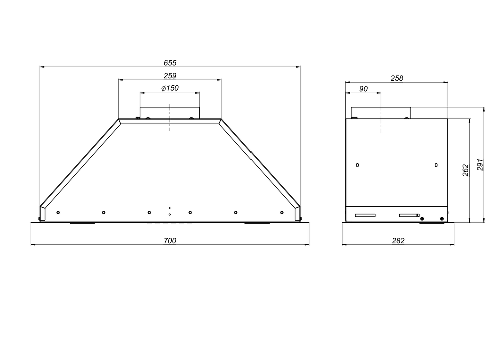 вытяжка встраиваемая в подвесной шкаф, 70 см, 1000 м3/ч, черный