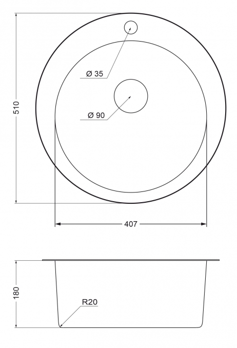 мойка, нержавеющая сталь, 510 мм, нержавеющая сталь полированная