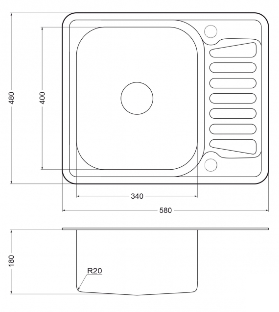 мойка, нержавеющая сталь, 580х480 мм, нержавеющая сталь полированная