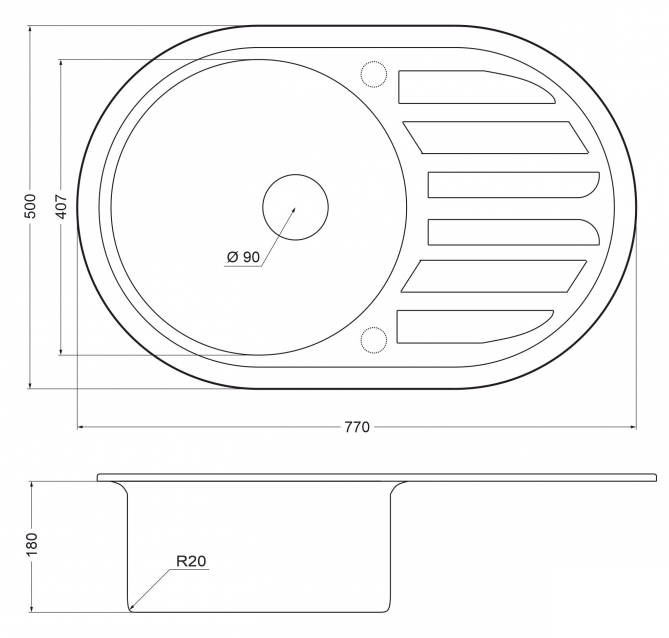 мойка, нержавеющая сталь, 770х500 мм, нержавеющая сталь глянцевая