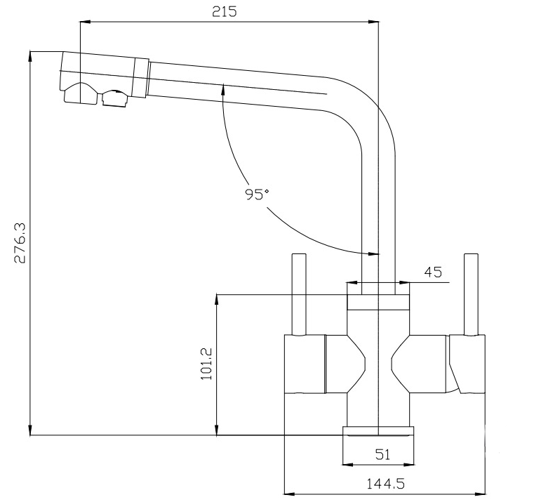 смеситель для кухни, латунь, дополнительный излив для фильтрованной воды, хром