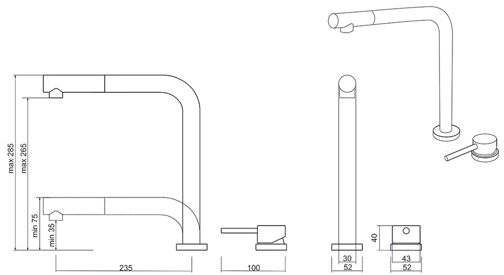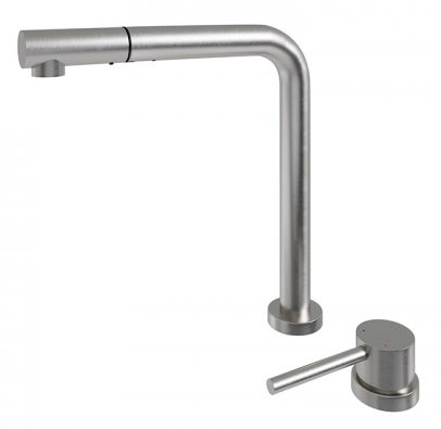 смеситель для кухни, латунь, высокий поворотный выдвижной излив, сатин