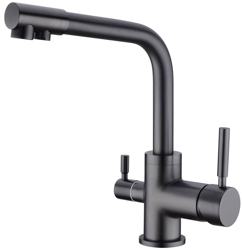 смеситель для кухни, латунь, дополнительный излив для фильтрованной воды, вороненая сталь