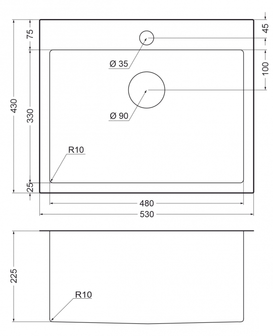 Расстояние от дна до верхней кромки чаши мойки. Оптимальная глубина — 15-18 см. Чем глубже мойка, тем меньше брызг попадет наружу.