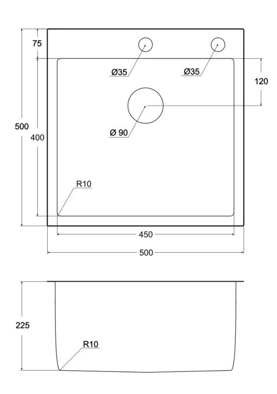 мойка, нержавеющая сталь PVD, 500х500 мм, нержавеющая сталь сатин