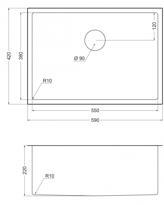 Расстояние от дна до верхней кромки чаши мойки. Оптимальная глубина — 15-18 см. Чем глубже мойка, тем меньше брызг попадет наружу.