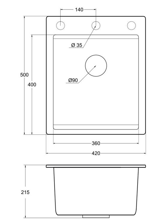 Расстояние от дна до верхней кромки чаши мойки. Оптимальная глубина — 15-18 см. Чем глубже мойка, тем меньше брызг попадет наружу.
