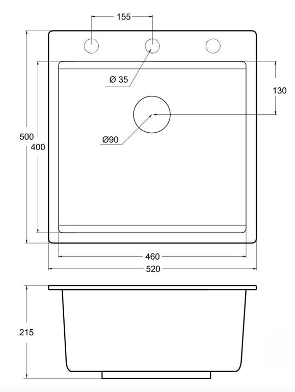 Расстояние от дна до верхней кромки чаши мойки. Оптимальная глубина — 15-18 см. Чем глубже мойка, тем меньше брызг попадет наружу.