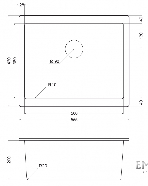 Emar EMQ-1555.P, мойка, гранит, берилл Мойка гранитная
