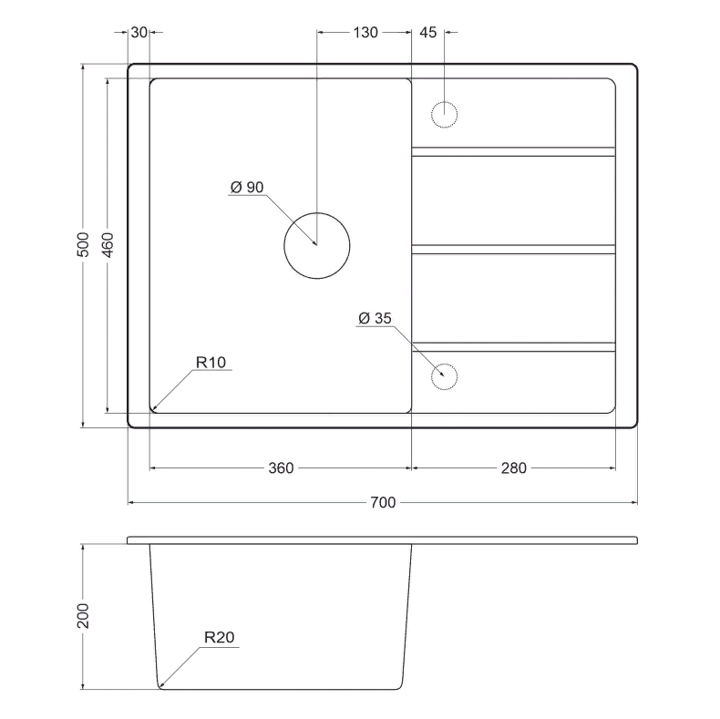 Расстояние от дна до верхней кромки чаши мойки. Оптимальная глубина — 15-18 см. Чем глубже мойка, тем меньше брызг попадет наружу.