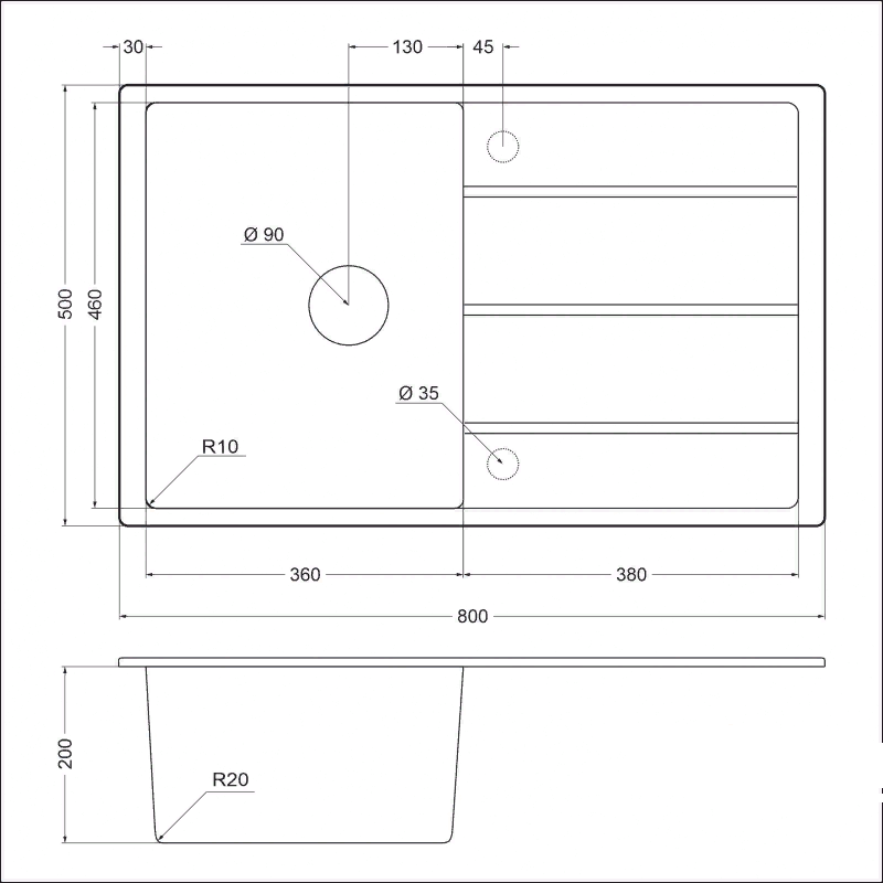 Наличие и расположение крыла кухонной мойки — слева, справа или с обеих сторон. Крыло оборачиваемой мойки можно расположить с любой стороны.