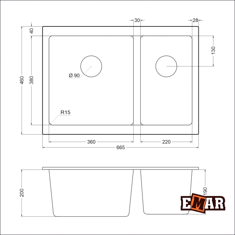Emar EMQ-2665.PL, мойка, гранит, алмаз
