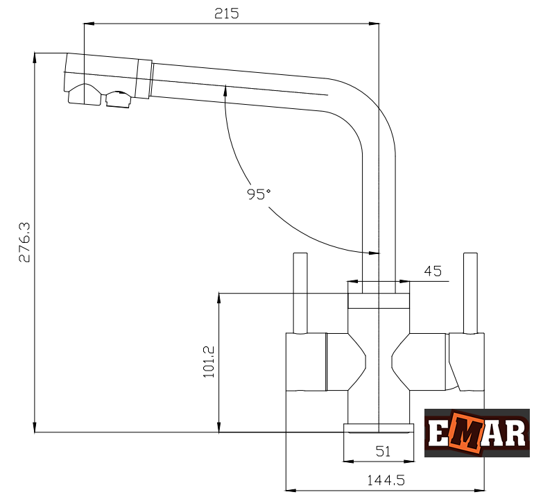 Emar ЕС-4003H, смеситель, сатин Смеситель из металла