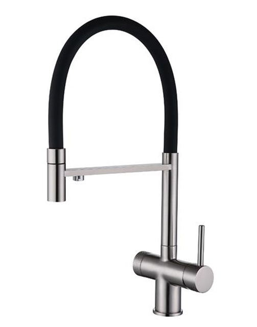 смеситель для кухни, латунь, дополнительный излив для фильтрованной воды, сатин