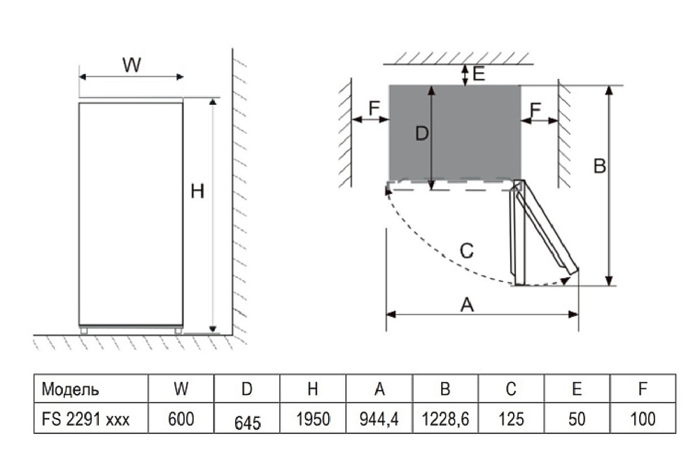 Evelux FS 2291 DW Двухкамерный холодильник отдельностоящий