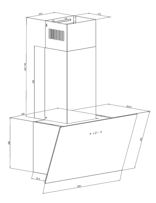 вытяжка наклонная, 60 см, 950 м3/ч, черное стекло