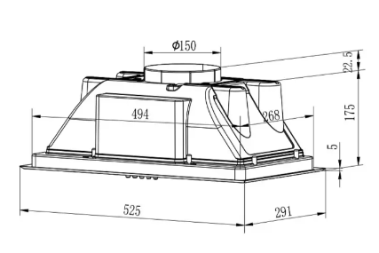 вытяжка встраиваемая в подвесной шкаф, 53 см, 750 м3/ч, черный