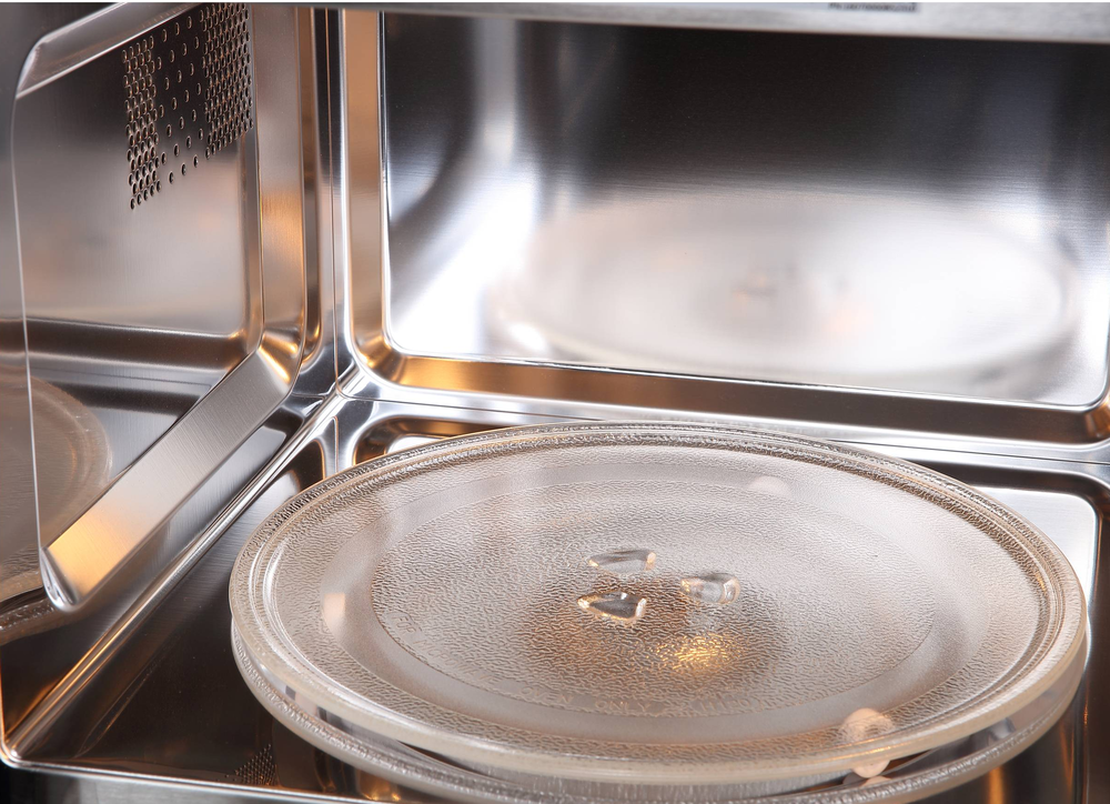Поворотный стол — это крутящееся блюдо в центре. Его отсутствие позволяет поместить в камеру посуду большого размера или неправильной формы.