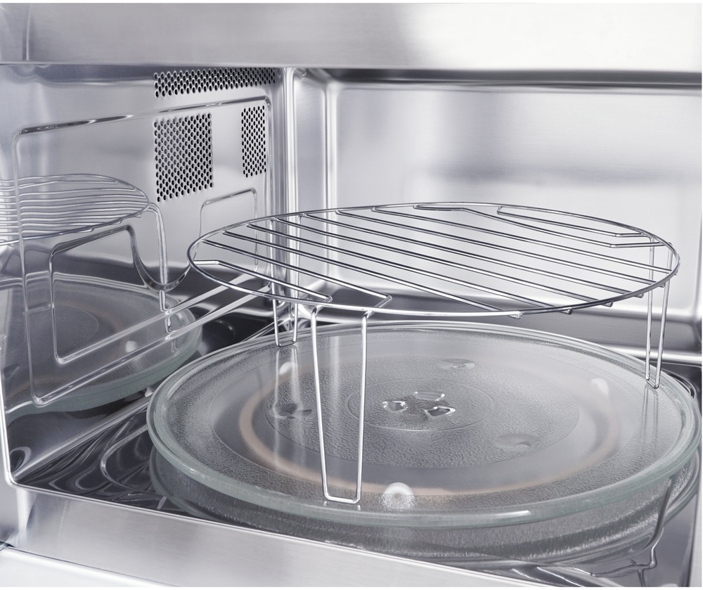 Поворотный стол — это крутящееся блюдо в центре. Его отсутствие позволяет поместить в камеру посуду большого размера или неправильной формы.