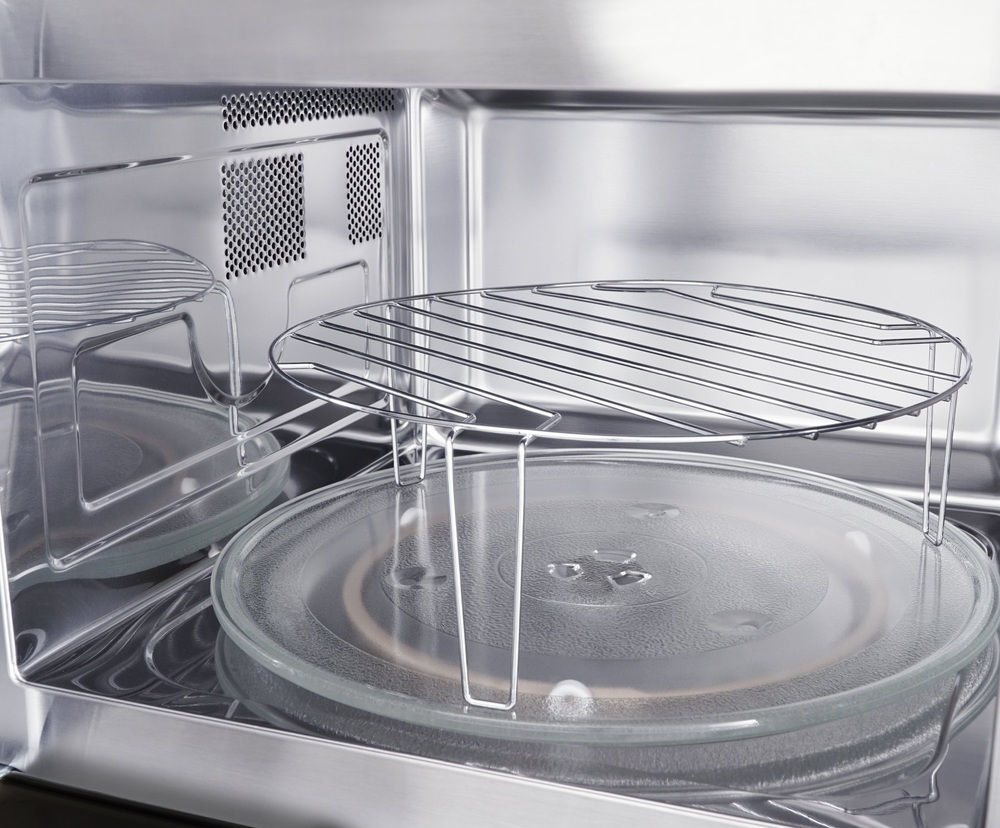 Поворотный стол — это крутящееся блюдо в центре. Его отсутствие позволяет поместить в камеру посуду большого размера или неправильной формы.