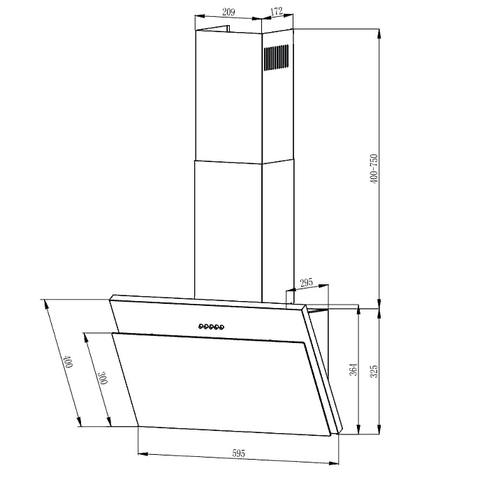 вытяжка наклонная, 60 см, 900 м3/ч, черное стекло