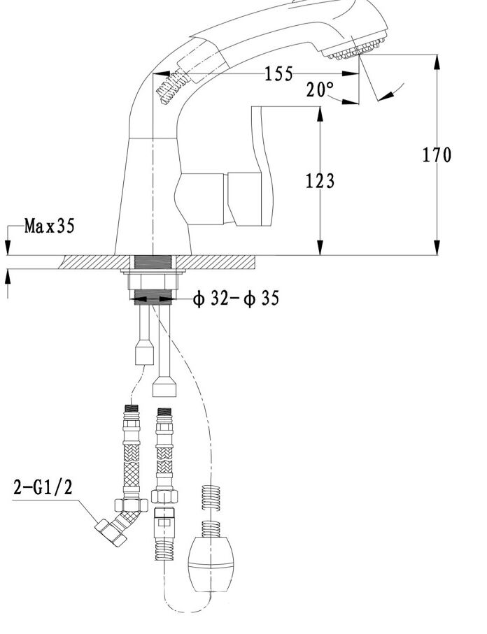 Смеситель д/кухни с выдвижной лейкой D-40мм(серый металлик)