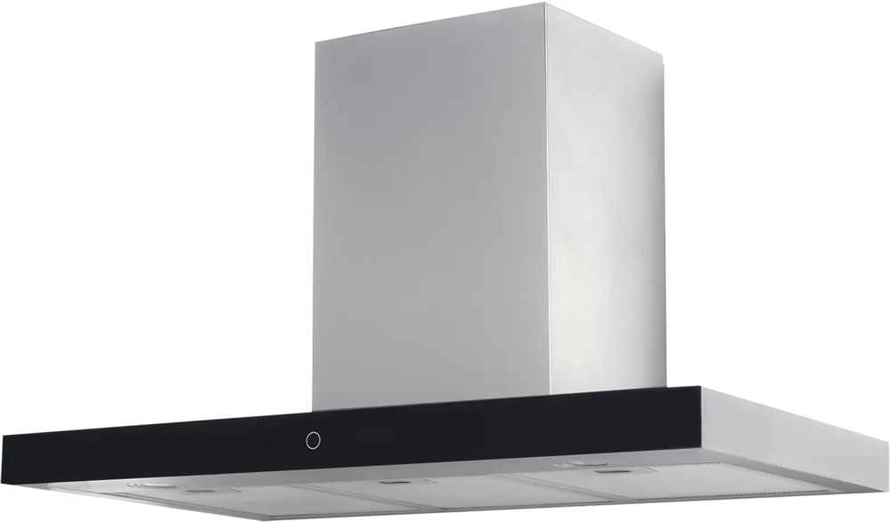 вытяжка пристенная, 90 см, 1000 м3/ч, нержавеющая сталь/передняя панель черное стекло