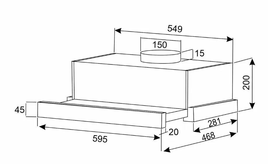 вытяжка встраиваемая телескопическая, 60 см, 600 м3/ч, черное стекло