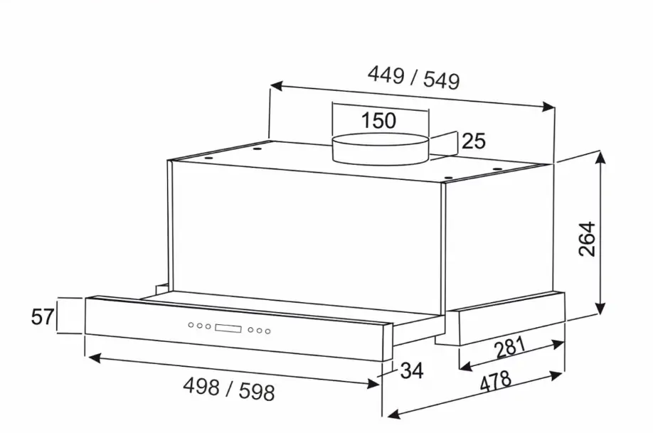 вытяжка встраиваемая телескопическая, 60 см, 1000 м3/ч, черный