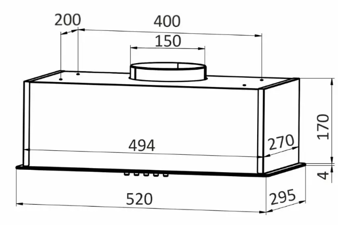 вытяжка встраиваемая в подвесной шкаф, 52 см, 850 м3/ч, черное стекло