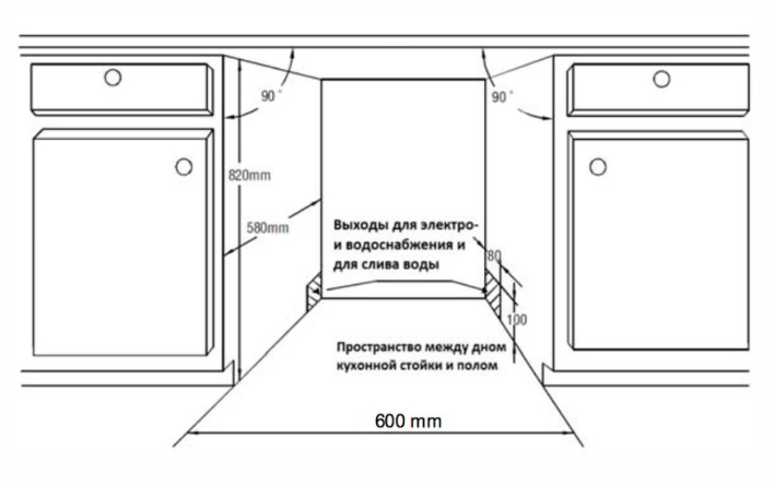 Ширина корпуса электроприбора. Особенно важно точно знать точную допустимую ширину для встраиваемой техники.
