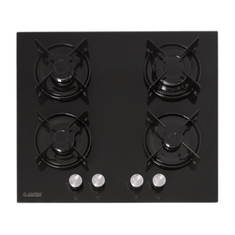 поверхность газовая, 60 см, газ на стекле, 4 конфорки, эмалированные решетки, черный