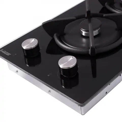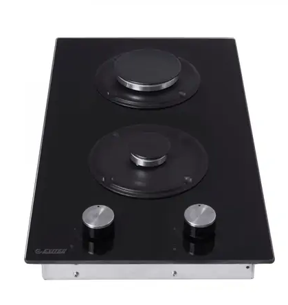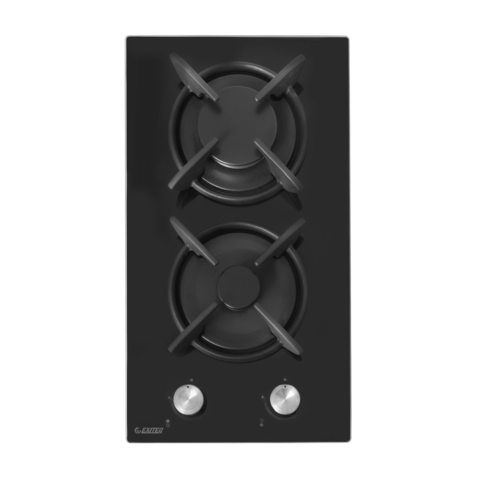 поверхность газовая, 30 см, газ на стекле, 2 конфорки, чугунные решетки, черный