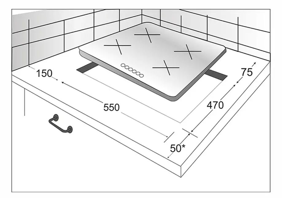 Расположение панели управления варочной поверхностью относительно конфорок. Если панель расположена сбоку, она будет справа.