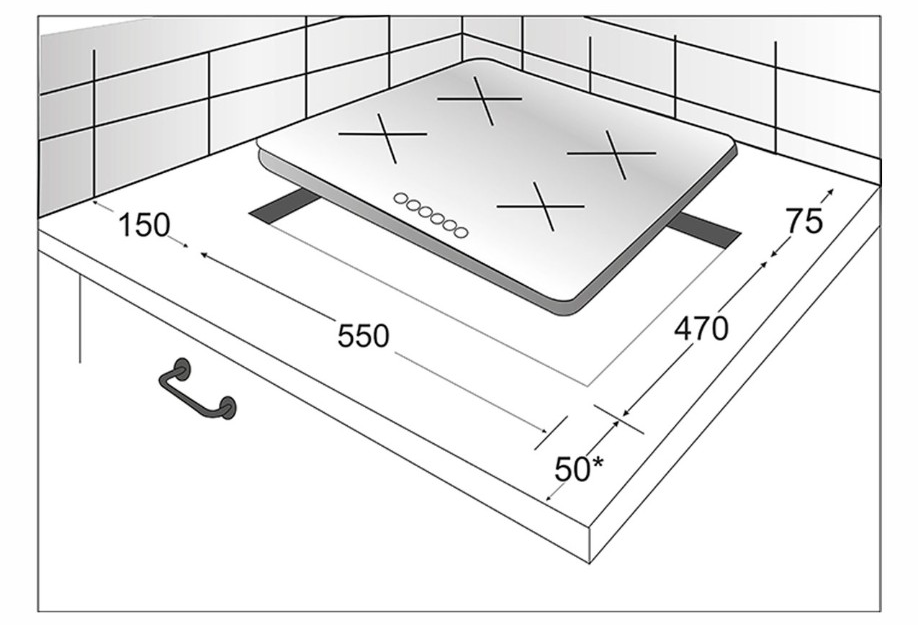 Расположение панели управления варочной поверхностью относительно конфорок. Если панель расположена сбоку, она будет справа.