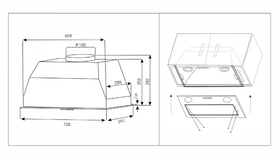 В зависимости от расположения существует несколько типов установки кухонных вытяжек: встраиваемые, стандартные, пристенные, островные и др.