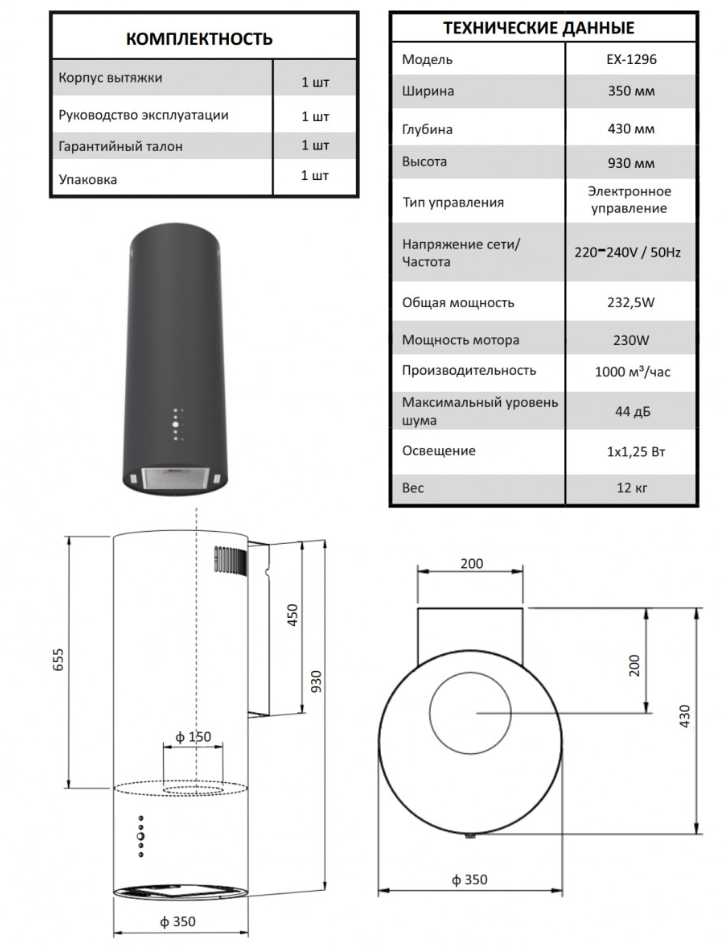 EXITEQ EX-1296 white Вытяжка пристенная цилиндрическая
