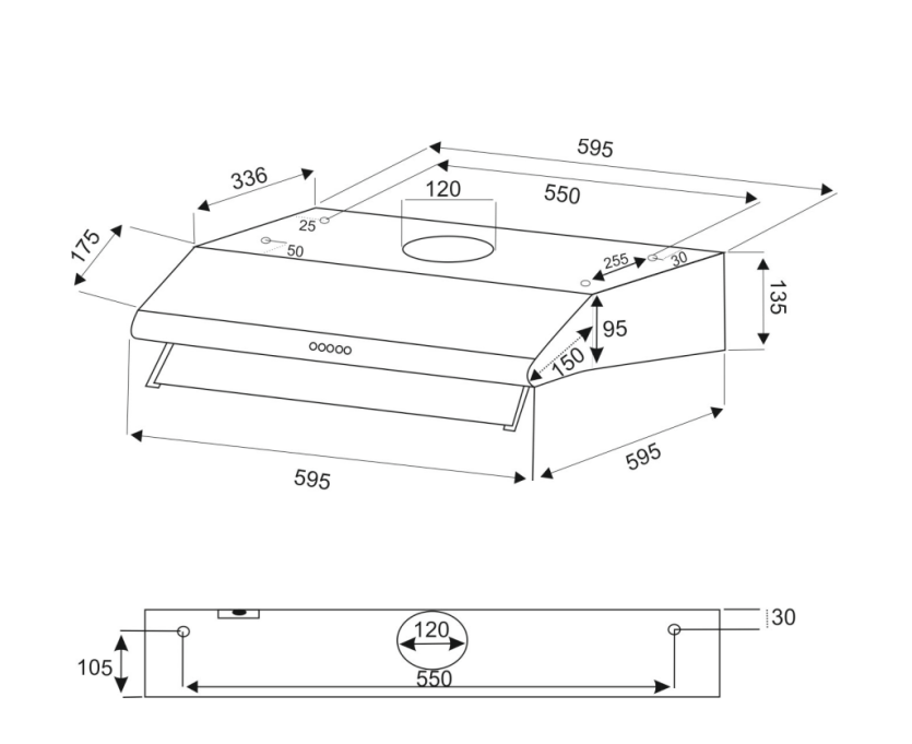 вытяжка стандартная, 60 см, 400 м3/ч, нержавеющая сталь