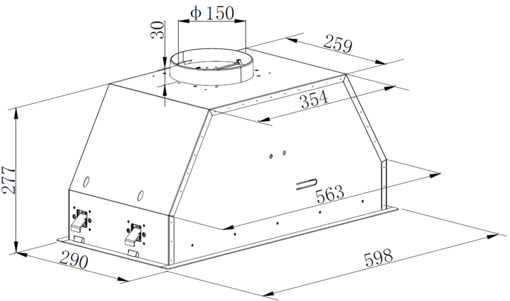 вытяжка встраиваемая в подвесной шкаф, 60 см, 850 м3/ч, черный