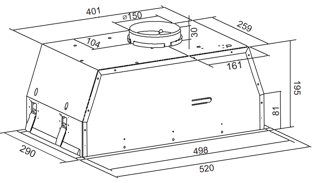 вытяжка встраиваемая в подвесной шкаф, 52 см, 850 м3/ч, черный